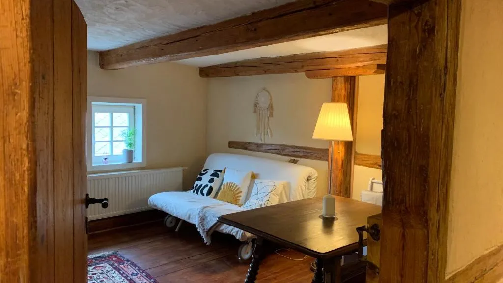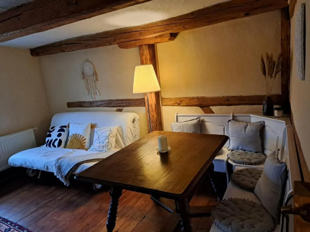 Schönes altes Haus in vollkommener Ruhe gelegen mit großem Garten und Außenbereich zum Sitzen. Zwei Betten waren vorhanden – eines mit weicher, eines mit härterer Matratze –, was für unsere beiden Paare perfekt geeignet war. Die Küche und das Esszimmer befinden sich im Erdgeschoss und sind gut ausgestattet für Kochen und Essen. Zwei Schlafzimmer sowie das Wohnzimmer und das Badezimmer (sehr modern) liegen im Dachgeschoss. Der Vermieter ist sehr freundlich.